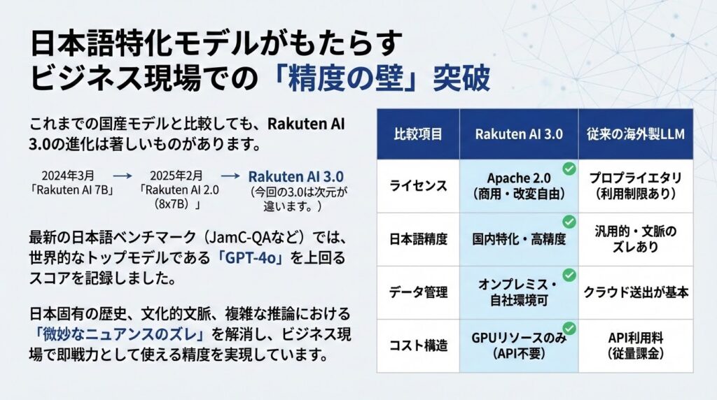 Rakuten AI 3.0:企業導入でコスト激減?Apache 2.0公開がDX戦略にもたらす衝撃と活用法